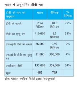 है। ग्लोबल टीबी रिपोर्ट 2018 के अनुसार तपेदिक की